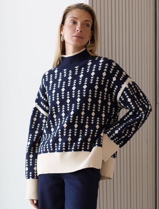 Состав: 50%Вис 20%ПА 20%ПЭ 10%Кашемир Параметры модели на первом фото: Рост 170, бюст 89, талия 63, бедра 92Свитер жаккардовой вязки выполнен из нежной пряжи на основе вискозы с добавлением кашемира. Свободная модель со спущенным плечом дополнена боковыми разрезами, что делает образ еще более расслабленным. Совет стилиста: такой джемпер может стать ключевым акцентом в сдержанном комплекте. Выбирайте однотонные низы в тон широкой рибаны или на контрасте.