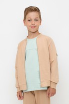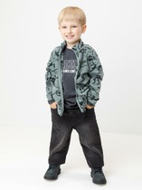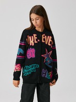 Свитшот прямого силуэта с втачными длинными рукавами, по линии низа имитация текстильной рубашки. Изделие выполнено из полотен контрастного цвета и разной текстуры, на полочке есть принт. Горловина круглая и обработана притачной бейкой. В качестве дополни
