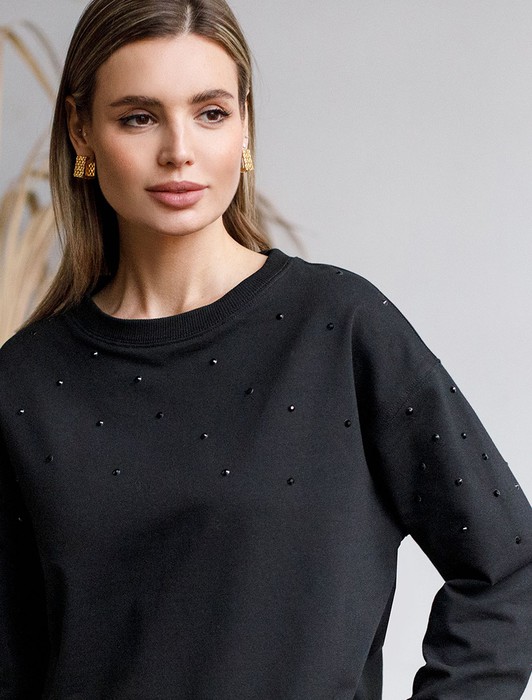 Совместные покупки Омск Женская одежда Костюмы, комплекты — Свитшот из эластичного футера с принтом стразами