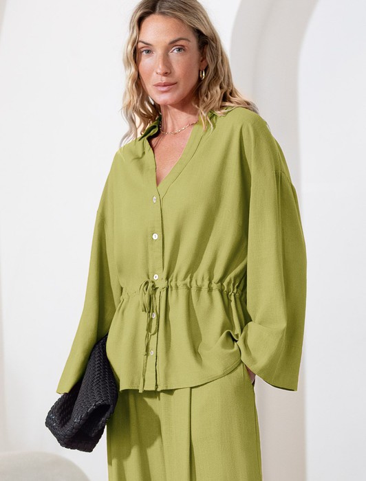 Совместные покупки Омск Женская одежда Костюмы, комплекты — Свободная блузка с кулиской на талии изо льна с вискозой