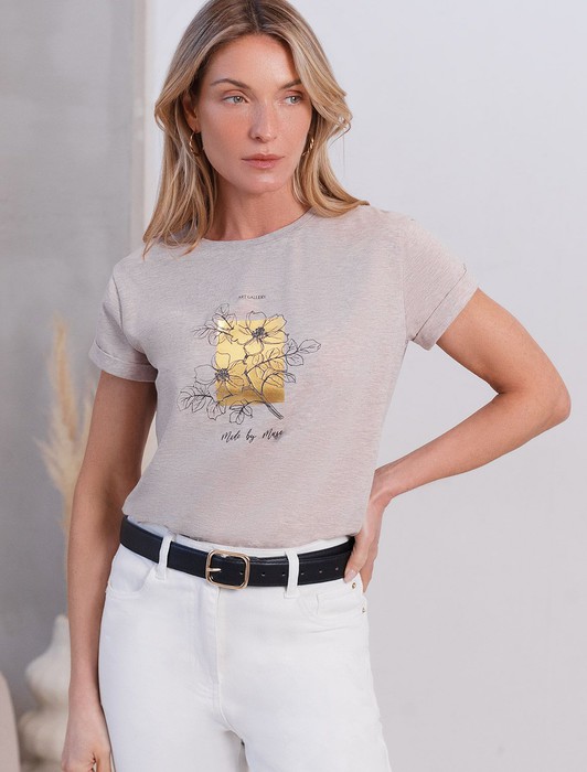 Совместные покупки Омск Женская одежда Футболки — Свободная футболка с принтом из премиального хлопка с эластаном
