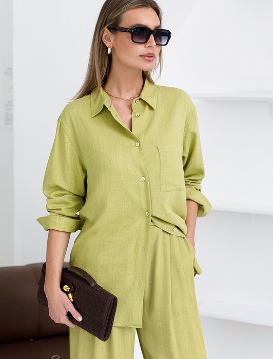 Состав: 70%Вис 30%Лен Плотность: 200 Г/м2Свободная удлиненная блузка с карманом салатового цвета изо льна с вискозой, плотностью 200 Г/м2 - идеальный вариант для весны и лета. Сочетание льна и вискозы обеспечивает комфорт и прохладу в жаркие дни. Материал хорошо драпируется и мягко прилегает к фигуре, создавая струящиеся складки. Эта эффектная блузка сочетает в себе современный крой, удобство и стиль. Отложной воротник придает образу элегантность, спущенная линия плеча — модный и расслабленный акцент, а удлиненный крой создает красивый и легкий силуэт. Пуговицы по всей длине делают льняную рубашку особенно практичной, вы можете носить ее растегнутой, в качестве верхнего слоя. Длинная рубашка отлично подойдет на высокий рост, а так же на большие размеры, поможет скрыть возможные недостатки и сохранит при этом стильный образ. Легкая блузка подходит для повседневного гардероба, смотрится красиво, обеспечивая максимальный комфорт.