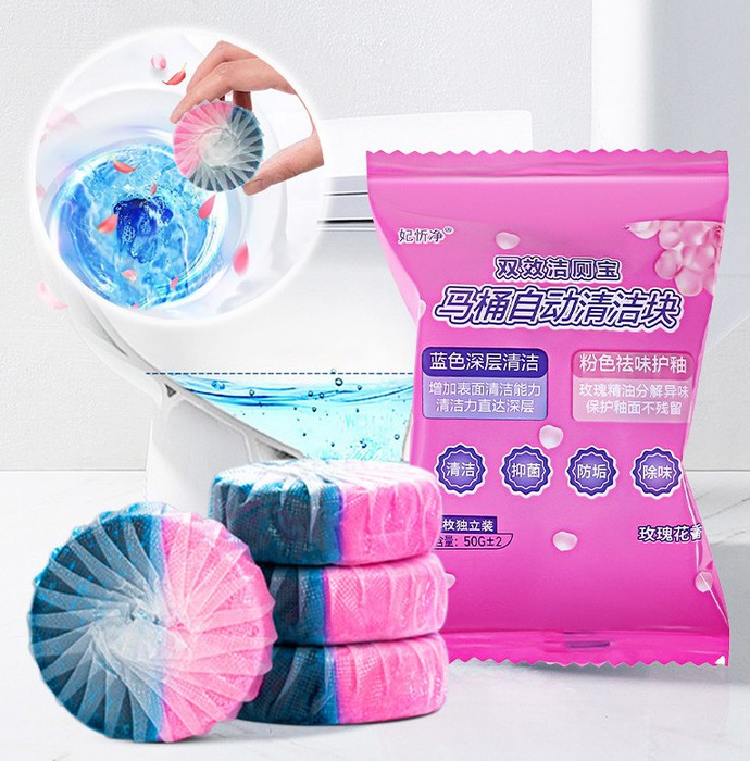 Чистящие таблетки которые помещаются в бачок унитаза, медленно растворяются в воде и работают при каждом сливе воды, спрятаны от глаз и не нарушают эстетики Вашего туалета. А подкрашенный синий цвет воды (при его изменении) напомнит Вам о необходимости замены блока на новый.Одной таблетки хватает на срок до 14 дней или до 100 смывов , что эффективно заменяет гели и подвесные блоки, проще в использовании и экономнее.Ваш унитаз всегда будет в чистоте и сэкономит время на уборку. Способ применения: Просто бросьте одну таблетку в бачок унитаза, и она сама справится с задачей, обеспечивая длительное действие и приятный аромат.