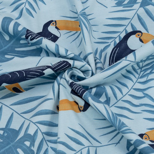 Ткань на отрез кулирка 3408-V2 Тукан на голубом