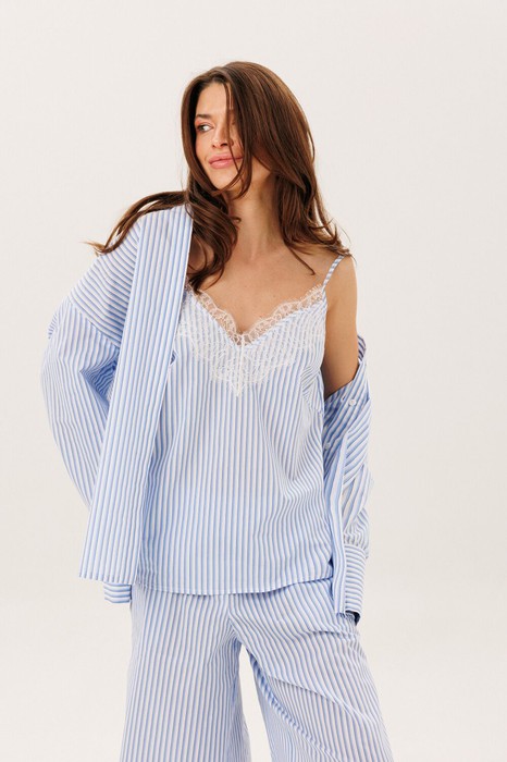 Базовый топ на тонких регулируемых бретелях с французским кружевом.