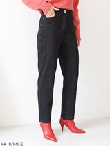Джинсы мом-фит из эластичного плотного денима на флисе