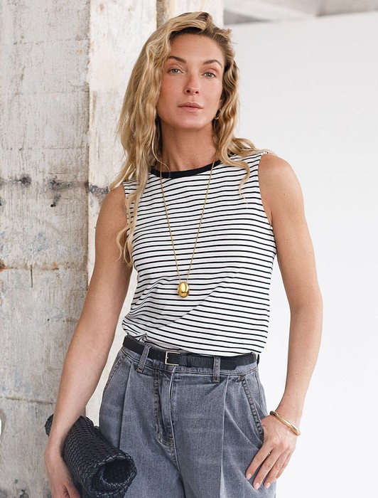 Совместные покупки Омск Женская одежда Футболки — Топ в полоску из премиального хлопка с эластаном