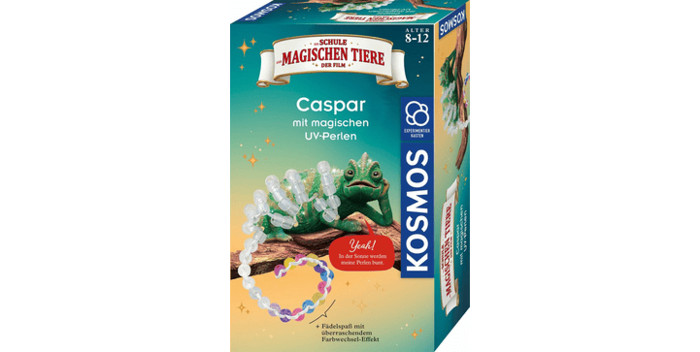 Простыми действиями дети могут создать своего собственного Каспара, украсив его тело и хвост крупными шариками и наблюдая, как они внезапно меняют цвет на солнце. Небольшой брелок и диорама также входят в набор для творчества и экспериментов, которые объясняются простыми и понятными инструкциями. В сочетании с информацией об УФ-излучении, защите от солнца и изменении цвета в природе этот набор станет отличным выбором для поклонников «Школы волшебных животных»!