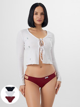 - Набор из двух трусиков из меланжевого трикотажа, декорированные ярким узким кружевом.- Одна из моделей декорирована контрастным принтом.