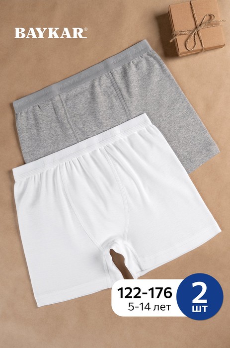 Детские трусы-боксеры для мальчиков и мальчиков-подростков удобный вариант на каждый день. Базовые трусы выполнены из 100% хлопка, что дарит комфорт в течение всего дня. В наборе 2 штуки белого и серого цветов.