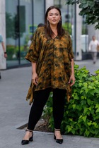 Туника женская с отрезной верхней частью выше линии талии, коротким рукавом. Кант по горловине и низу рукавов