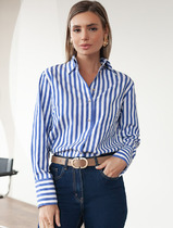 Vilatte Блузка свободного силуэта с золотистыми пуговицами D29.274 белый-синий