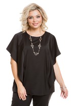 Туника молодежная. По бокам имеются карманы, рукав короткий. На полочке принт из страз.