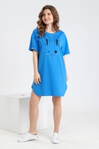 Персиково-синяя туника из кулирки. Принт в виде собачки в очках и надписи. Рукава чуть ниже локтей, общая длина до середины бедра. Может быть парой детской тунике Айка (продается отдельно). Размеры от 42 до 52. Внимание, товар не продается в розницу!