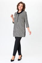 Короткая туника из кулирки. Темный фон, геометрические узоры. Рукава короткие, на груди две декоративные пуговицы. Размеры от 44 до 60. Имеется возможность приобретения в розницу.