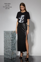 Юбка-карандаш из эластичной костюмной ткани, декорированная асимметричным подолом и разрезом спереди. Застежка-молния и шлица сзади. Без подкладки.