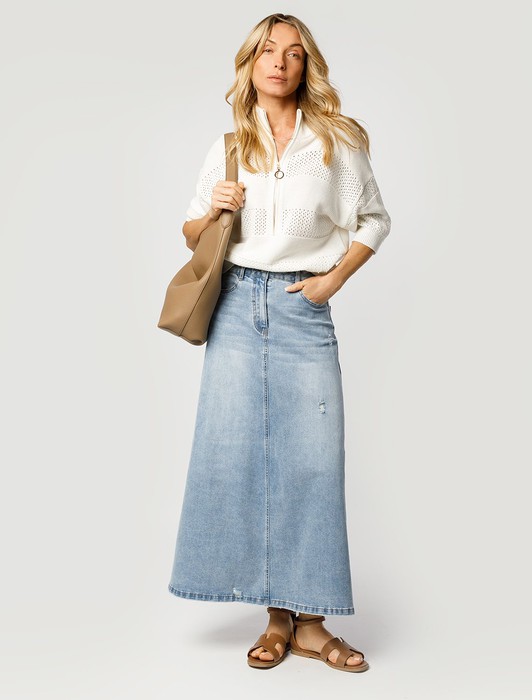 Состав: 70%Хлопок 28%ПЭ 2%ПУ Плотность: 11 OZ Параметры модели на первом фото: Рост 172, бюст 88, талия 64, бедра 88 Размер товара на первом фото: 42Юбка А-силуэта в голубом оттенке выполнена из эластичного денима. Модель с эффектной стиркой и декоративными рваными элементами дополнена пятью карманами как у джинс и брендированным патчем. Свободная модель с посадкой на талии подчеркивает достоинства и подходит для любого типа фигуры.