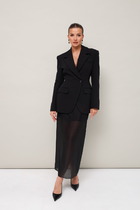 Юбка женская из экокожи. Перед юбки со швом посередине, переходящим в шлицу, с боковыми карманами и вытачками. Спинка со средним швом, заканчивающимся шлицей и вытачками. Застежка на тесьму молнию в переднем шве. Пояс притачной с эластичной резинкой сзади, с застежкой спереди на петлю и пуговицу. По швам проложены отделочные строчки. Изделие на подкладке.