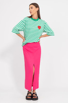 Юбка из плотной эко кожи , за счёт цвета выглядит очень минималистично.