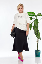 Стильная мини юбка выполнена из полотна шоколадного цвета с принтом горох. Характеристики: свободный крой, пояс на резинке, низ изделия – подгиб на резинке. Длина 46 см.