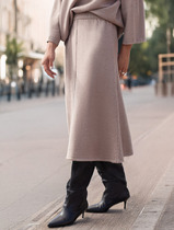 Ключевая деталь — разрез по переду, который добавляет образу динамики и практичности: он не только обеспечивает свободу движения, но и визуально вытягивает линию ног. Потайная застежка-молния сохраняет чистоту линий, подчеркивая лаконичность дизайна.