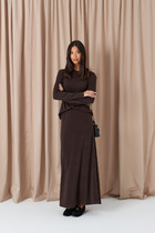 Vilatte Юбка миди с разрезом из струящегося плотного сатина D26.205 кофейный