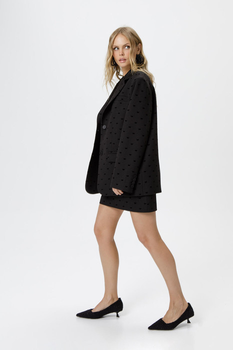 Мини-юбка из костюмной ткани с бантиками из флока.