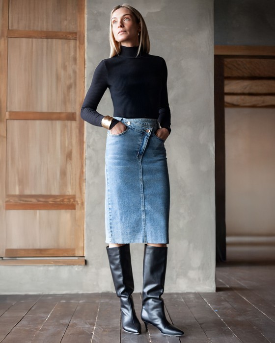 Заказать АКЦИЯ -14% Юбка с ассиметричной застежкой из эластичного денима