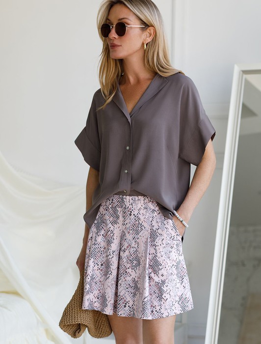 Состав: 100%Хлопок Плотность: 140 Г/м2Мини юбка-шорты кофейно-пудрового цвета с принтом выполнена из 100% хлопка плотностью 140 Г/м2. Главная особенность этого изделия — тонкое кулирное полотно, которое легче и воздушнее стандартного трикотажа. Благодаря своей деликатной текстуре модель идеально подходит для домашних образов и пижамных комплектов. Ткань отлично «дышит», обеспечивая максимальный уют во время сна и отдыха. Эластичный пояс с резинкой удобно сидит на талии, позволяя спокойно носить юбку в течение дня и дома. Длина юбки идеально подходит для создания романтичного и милого образа, при этом изделие сохраняет удобство и практичность. Юбка-шорты отлично справляется с ролью домашней пижамы благодаря мягкости материала и свободному крою. Романтичная и красивая юбочка станет замечательным дополнением к повседневному домашнему гардеробу, подчеркивая женственность и легкость.Практичные карманы добавляют функциональности. Эта удобная юбка-шорты с трендовым змеиным принтом универсальна и подходит как для дома, так и для отдыха, благодаря сочетанию стиля и удобства. Декоративные складки скроют любые недостатки фигуры, создавая ощущение легкости и свободы движений.