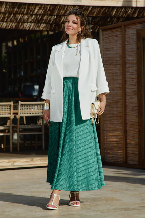 Крой юбки уравновешивает визуально бёдра и создаёт плавный силуэт. Длина юбки 96 см