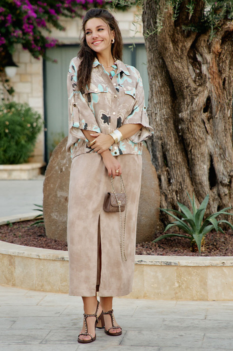 Эта юбка длины миди, выполненная из стопроцентного тенсела, воплощает в себе эстетику «жидкого золота». В глубоком бежевом оттенке материал обретает особую магию. Бархатистая текстура тенсела дарит коже исключительный комфорт, делая эту вещь воплощением современной женственности, где чувственность встречается с безупречным удобством. Юбка длины миди с разрезом в среднем шве по переду. Пояс в юбке притачной с эластичной тесьмой-резинкой, которая обеспечивает максимально удобную посадку на любой тип фигуры. По переду юбки наклонные карманы. Варианты стилизации: для утонченного монохромного образа дополните юбку трикотажным топом или кашемировым джемпером в оттенках бежевого, песочного или кремового. Такое сочетание фактур — гладкого тенсела и уютного трикотажа — создаст визуально дорогой и гармоничный ансамбль. Завершите наряд мюлями на небольшом каблуке и минималистичными золотыми украшениями, которые подчеркнут теплоту карамельного цвета. В рамках делового, но расслабленного дресс-кода юбка идеально подружится с объемной белой рубашкой мужского кроя из плотного хлопка. Расстегните верхние пуговицы, слегка закатайте рукава и заправьте рубашку внутрь, чтобы акцентировать талию. Кожаные лоферы и структурированная сумка-тоут добавят образу строгости, сохраняя при этом общую мягкость и грацию. Для создания дерзкого контраста в стиле гранж-шик сочетайте карамельное миди с графичной футболкой и кожаной косухой. Грубые ботинки на массивной подошве подчеркнут хрупкость и нежность ниспадающей ткани. Этот вариант идеален для городских прогулок, когда хочется выглядеть элегантно, но при этом чувствовать себя свободно и уверенно. Длина юбки 90 см.