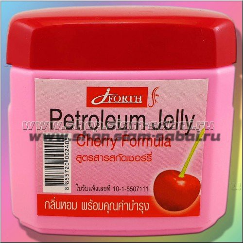 Вазелин с маслом вишни для губ 70 грамм Petroleum Jelly Cherry formula Тайский вазелин, обогащенный маслом вишни, для ухода за кожей губ. Вазелин с маслом вишни смягчит сухую грубую кожу, защитит ее от растрескивания и обветривания, устранит шелушение. Также вазелин с маслом вишни облегчит боль и устранит покраснение при небольших ожогах кожи (солнечный или тепловой ожог). Тайский вазелин можно считать универсальным косметическим средством, подходящее для увлажнения и питания сухой кожи, для лечения солнечных ожогов, для ухода за губами, а также для смягчения грубой кожи перед педикюром. Объем тайского вазелина 70 грамм, произведено в Таиланде. Вазелин бесцветный.