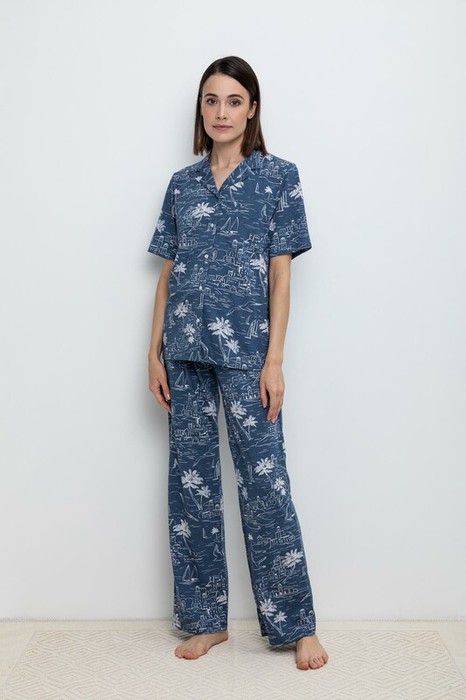 Лёгкие комфортные брюки из набивного меланжевого трикотажа . Пояс на резинке регулируется по ширине с помощью атласной ленты. Низ изделия обработан плоскими швами. Гладкий материал приятен к телу, не теряет форму и позволяет коже дышать.