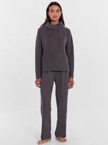 Свободные женские брюки с боковыми карманами из плотного гладкого трикотажа интерлок. Застегиваются на молнию и кнопку. Низ обработан плоскими швами.