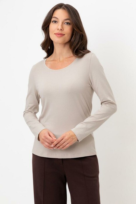 Базовый лонгслив из плотного однотонного трикотажа супрем с добавлением спандекса.