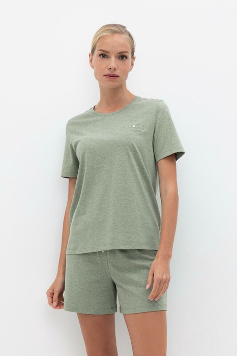 Однотонная футболка с карманом и пуговицей из меланжевого трикотажа.   Гладкий материал приятен к телу и позволяет коже дышать.