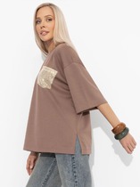Удлиненная свободная футболка из мягкого футера с рукавами наизнанку.