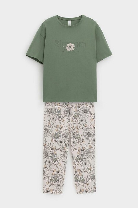 Clever Пижама женская CLE LP15-1199/4 т.зелёный/молочный