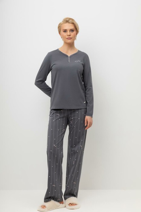 25.03 Very Neat пижама женЕ 20179/серый,полоски и сердечки