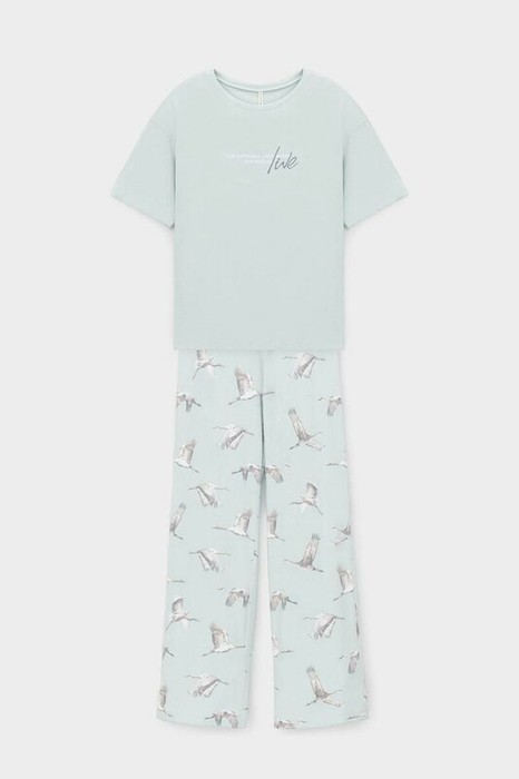 25.03 Very Neat пижама жен (фуфайка, брюки)Е 20157/туманный голубой, журавли