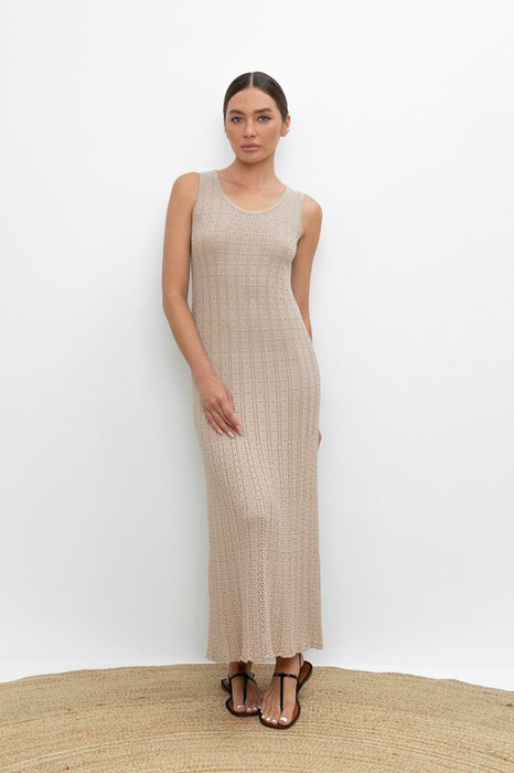 Вязаное платье макси с ажурной юбкой. Состав 50% хлопок, 50% акрил. Благодаря акрилу в составе изделие не пилингуется.