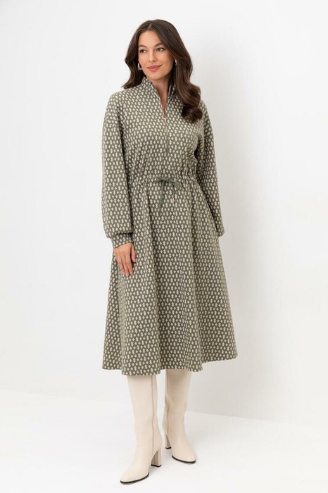 Платье с кулиской из плотного гладкого трикотажа интерлок с застежкой на молнию. Кулиска по линии талии подчеркивает женственность пропорций. Шнурок с наконечниками для утяжки служит украшением. Спущенное плечо придает изделию свободный силуэт.
