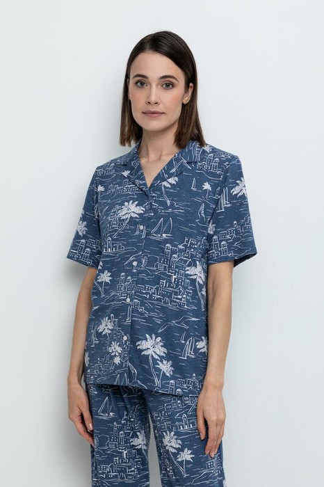 Совместные покупки Омск Женская одежда Домашняя одежда — Very Neat рубашка жен Е 30083/джинсовый,морской пейзаж