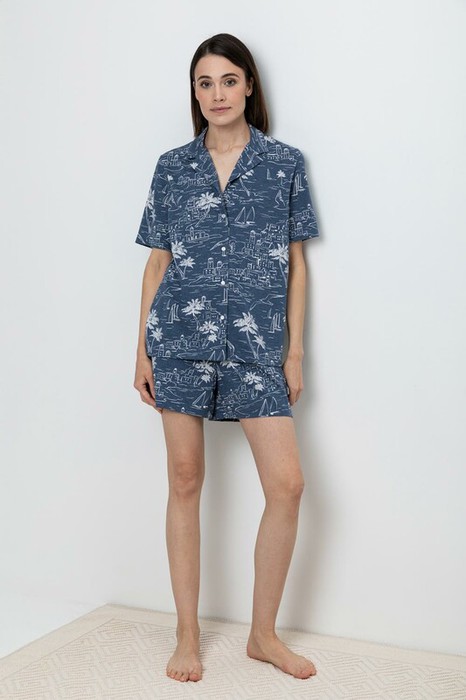 27.03 Very Neat шорты жен Е 40044/джинсовый,морской пейзаж