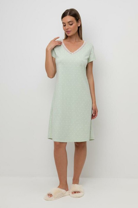 Совместные покупки Омск Женская одежда Пижамы, халаты — Very Neat сорочка жен Е 10015/24/пастельно-зеленый,горошек