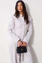 Укороченная трикотажная куртка на молнии с карманами и кулиской по низу. Произведена из мягкого набивного трикотажного футера. Спущенные рукава и манжеты на резинке добавляют объем.