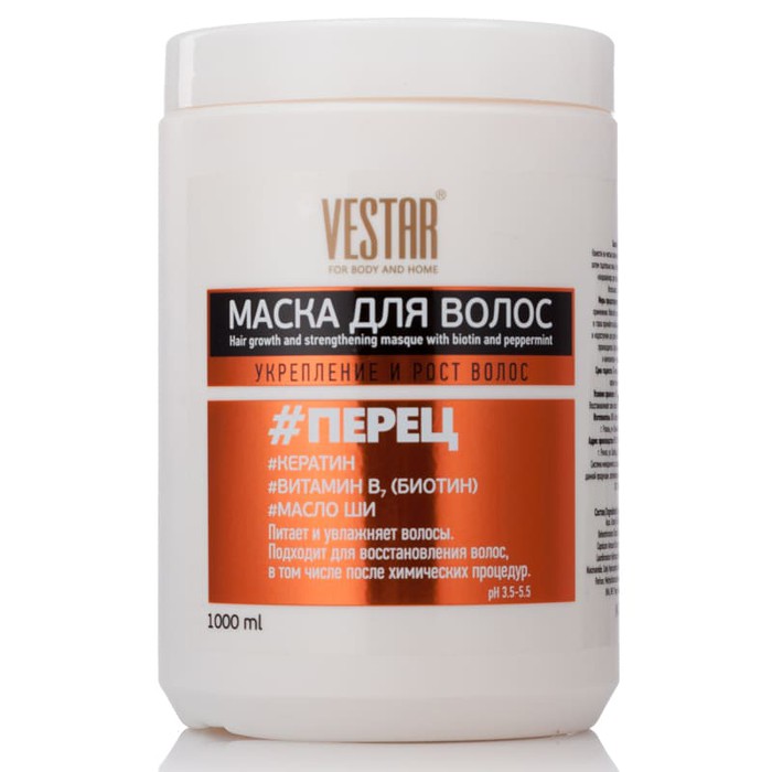 Уникальный состав маски с кератином, маслом ши, экстрактом перца и витамином B7 (биотином) усиленно питает, обогащает слабые и тусклые волосы, активизирует кровообращение и обменные процессы волосяных фолликулов, способствует здоровому росту волос, возвращает блеск и эластичность. Не содержит парабенов, силиконов, минеральных масел. рН 3.5-5.5