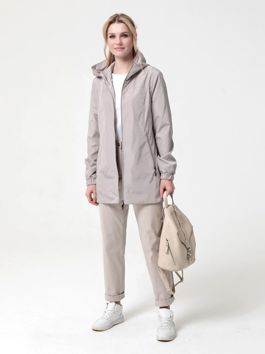 Ветровка прямого силуэта с легким приталиванием, с втачными рукавами и застежкой на двухзамковую молнию. Капюшон - втачной. Карманы, расположенные в рельефных швах, застегиваются на молнию. Ширину изделия по низу можно регулировать затяжкой. Лаконичная, комфортная модель ветровки полуспортивного стиля подходит для отдыха и повседневного использования.