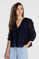 Укороченная блузка с пышными рукавами-фонариками выполнена из легкого хлопкового поплина. Супатная застежка на пуговицы из натурального перламутра. Внизу кулиса с лентами из основного полотна. В изделии будет комфортно, даже в самое жаркое время года. Подходит для любой фигуры. Сочетается в костюме с кюлотами D24.233 и юбкой D26.179