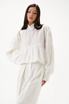 Летящая блузка с отложным воротником выполнена из премиальной вискозы и лиоцелла. Мягкий фактурный материал струится по телу. Вискоза обеспечивает отличную воздухопроницаемость и поддерживает комфортный микроклимат. Модель дополнена пуговицами из натурального перламутра, на спинке изделия металлический логотип бренда. Отлично впишется в нестрогий офисный дресс-код или в расслабленном повседневном образе с джинсами и юбками.